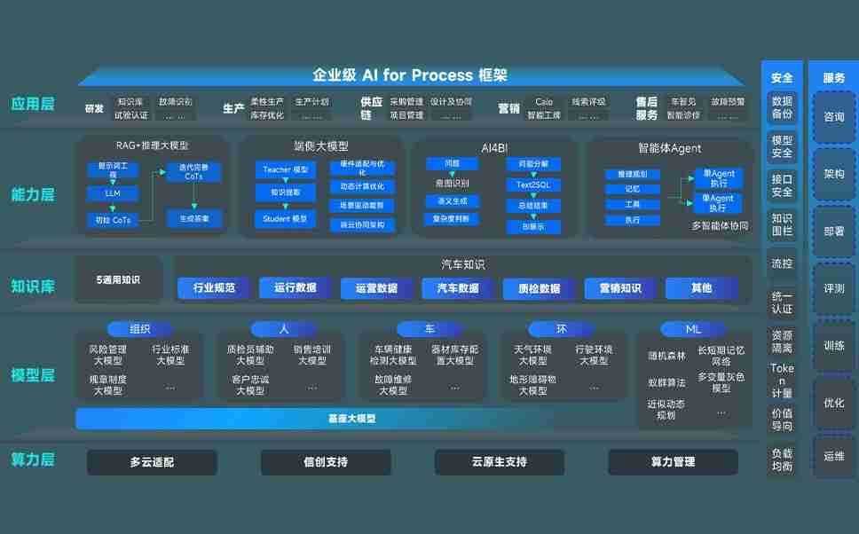 端到端的一站式AI工作空间深度融合了从企业战略规划到日常经营的全流程业务板块,,定向解决车企内部领域多、、、部门多、、、链条长、、、场景碎片化等难题,,,,支持车企快速构建以AI为核心的生产力写作体系,,实现任务执行与AI能力的无缝集成与交互